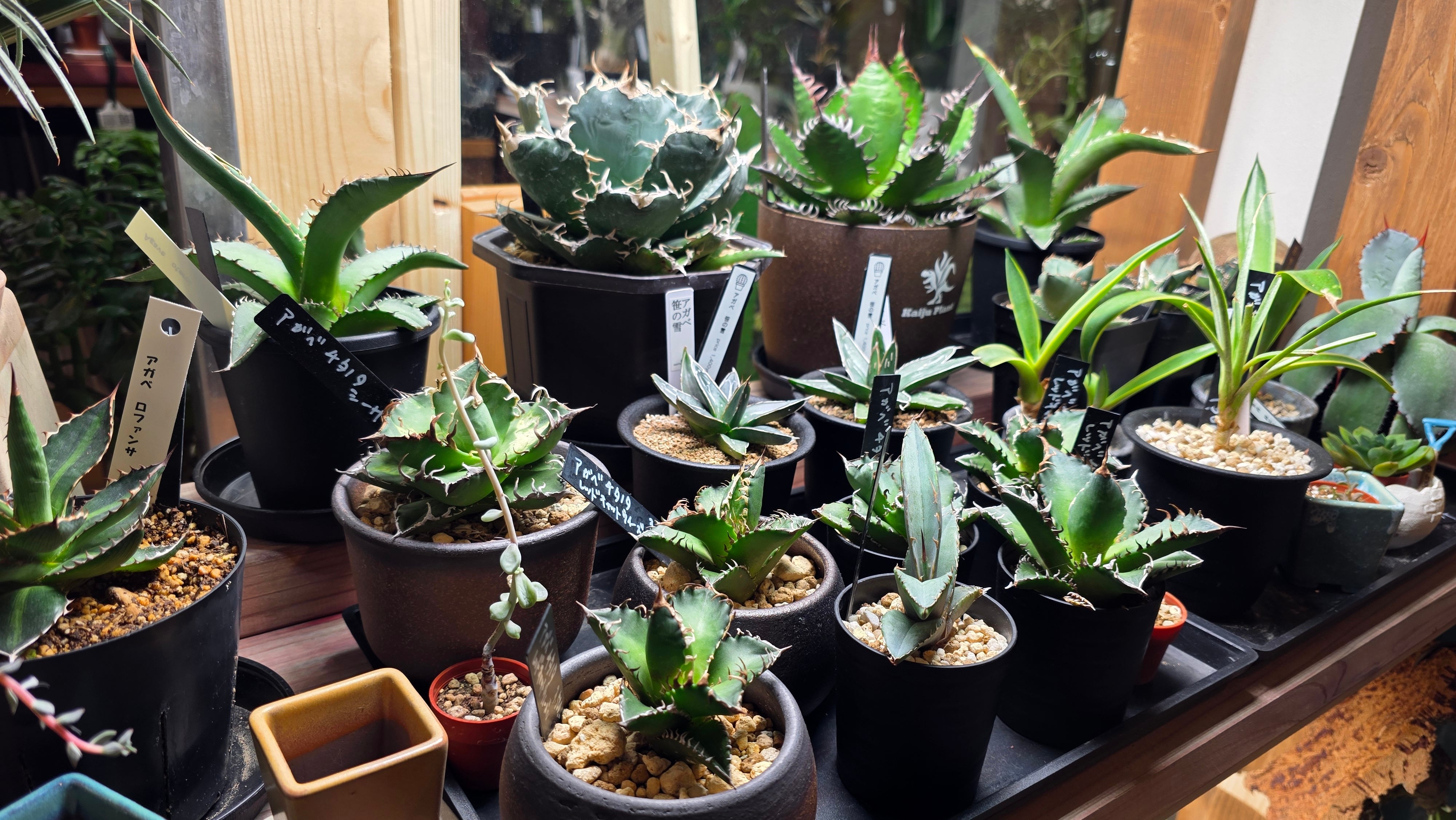 アガベ チタノタ 白鯨 アガベ チタノタ 白鯨は、その美しいフォルムと存在感で、多くの愛好者を魅了する人気の多肉植物です。特に白鯨と呼ばれる理由は、独特の葉の形状と色合いにあります。この魅力的な植物は、インテリアや庭にエレガントな雰囲気を添えます! 主な特徴と情報 原産地 : メキシコの乾燥地域に自生しています。 生育型 : 生育がゆっくりですが、しっかりとした根を張り、時には数十年にわたって成長を続けます。 草姿 : 厚みのある葉は、湾曲した美しい形状を持ち、白い刺がアクセントとなっています。このユニークな姿が強い個性を表現します。 栽培 : 成長期(春〜秋): 明るい日当たりの良い場所で育てることが理想です。土が乾いたら水を与え、通気性の良い土を使用することで健康的に育ちます。耐寒性があるものの、過湿には注意を要します。 注意事項 最大限厳重に梱包をしたうえで発送いたしますが、多少の落葉、傷みや土のこぼれがある場合がございます。 輸送時の破損等に関する保障、返金等はございませんのでご了承下さい。 撮影時の見た目から多少変化することもございます。予めご理解ください。 生き物となりますので原則ノークレーム・ノーリターンでお願い致します。 個体により多少の柔らかさや傷等がある場合もございます。ご了承のうえ、ご購入ください。 ※店舗と在庫を共有しております。急遽品切れになる場合もございます。その際は速やかにご連絡の上キャンセル処理をさせていただきますので予めご了承ください。