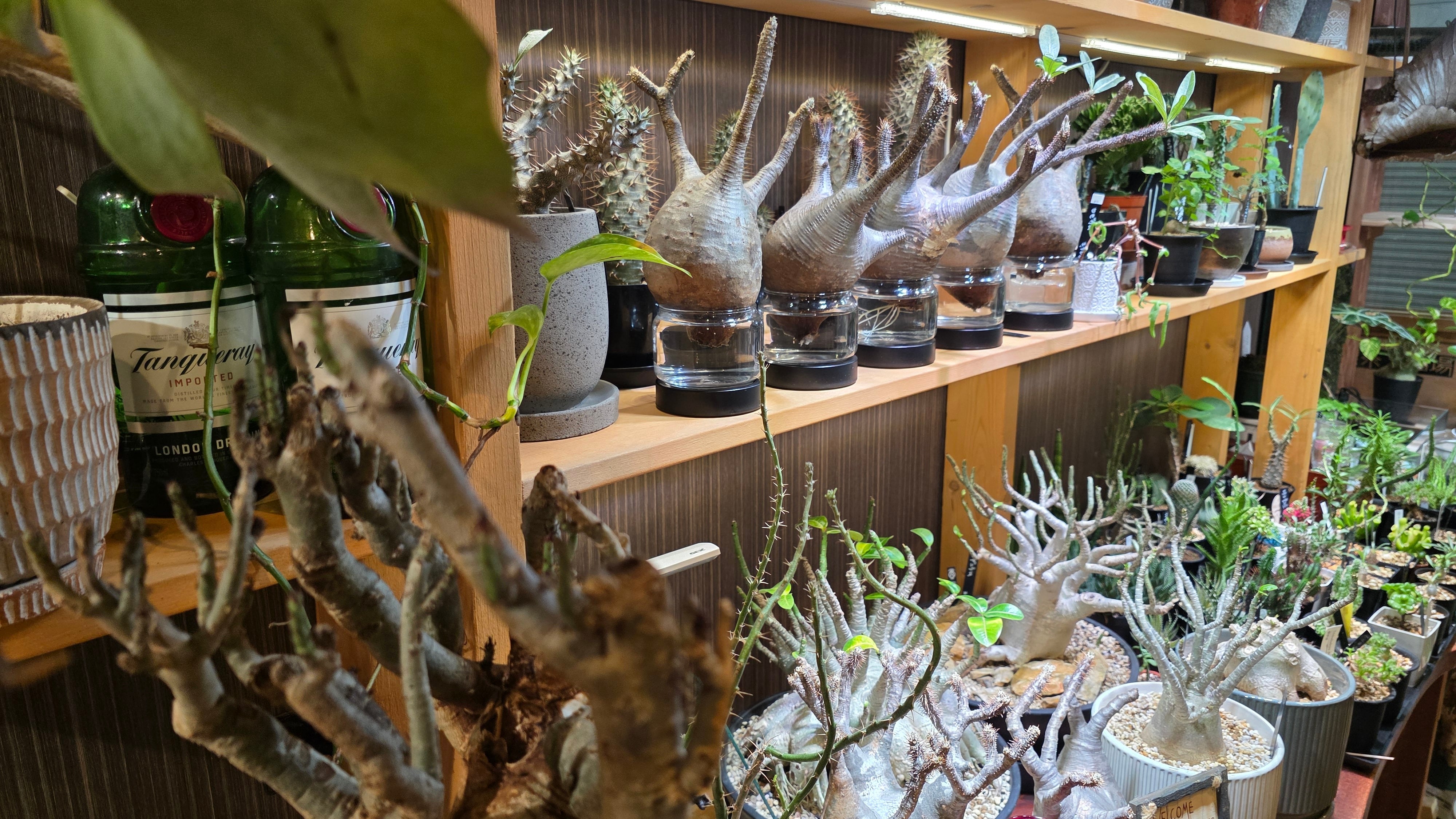 パキポディウム グラキリス (Pachypodium gracilius) 水耕栽培中(発根済み) ユニークな姿が目を引く多肉植物で、珍しい塊根を持つパキポディウムの一種です。独特なフォルムと美しい色合いが、インテリアやガーデニングに華を添えます。 主な特徴と情報 原産地: マダガスカルの乾燥地域に生育しています。 生育型: 一年を通して成長し、特に春から秋にかけて活発に育ちます。 草姿: 太い幹が特徴で、上部にはワイヤーのように曲がった若芽が放射状に広がります。その見た目は、まるでアートのようです。 栽培:成長期(春〜秋): 明るい日陰で管理し、土が乾燥したらたっぷりと水を与えます。また、通気性の良い土を使用すると良いです。高温多湿には比較的強いとされていますが、根腐れに注意が必要です。 *注意事項 ・最大限厳重に梱包をしたうえで発送いたしますが、多少の落葉、傷みや土のこぼれがある場合がございます。 ・輸送時の破損等に関する保障、返金等はございませんのでご了承下さい。 ・撮影時の見た目から多少変化することもございます。予めご理解ください。 ・生き物となりますので原則ノークレーム・ノーリターンでお願い致します。 ・個体により多少の柔らかさや傷等がある場合もございます。ご了承のうえ、ご購入ください。 ※店舗と在庫を共有しております。 急遽品切れになる場合もございます。 その際は速やかにご連絡の上キャンセル処理をさせていただきますので予めご了承ください。