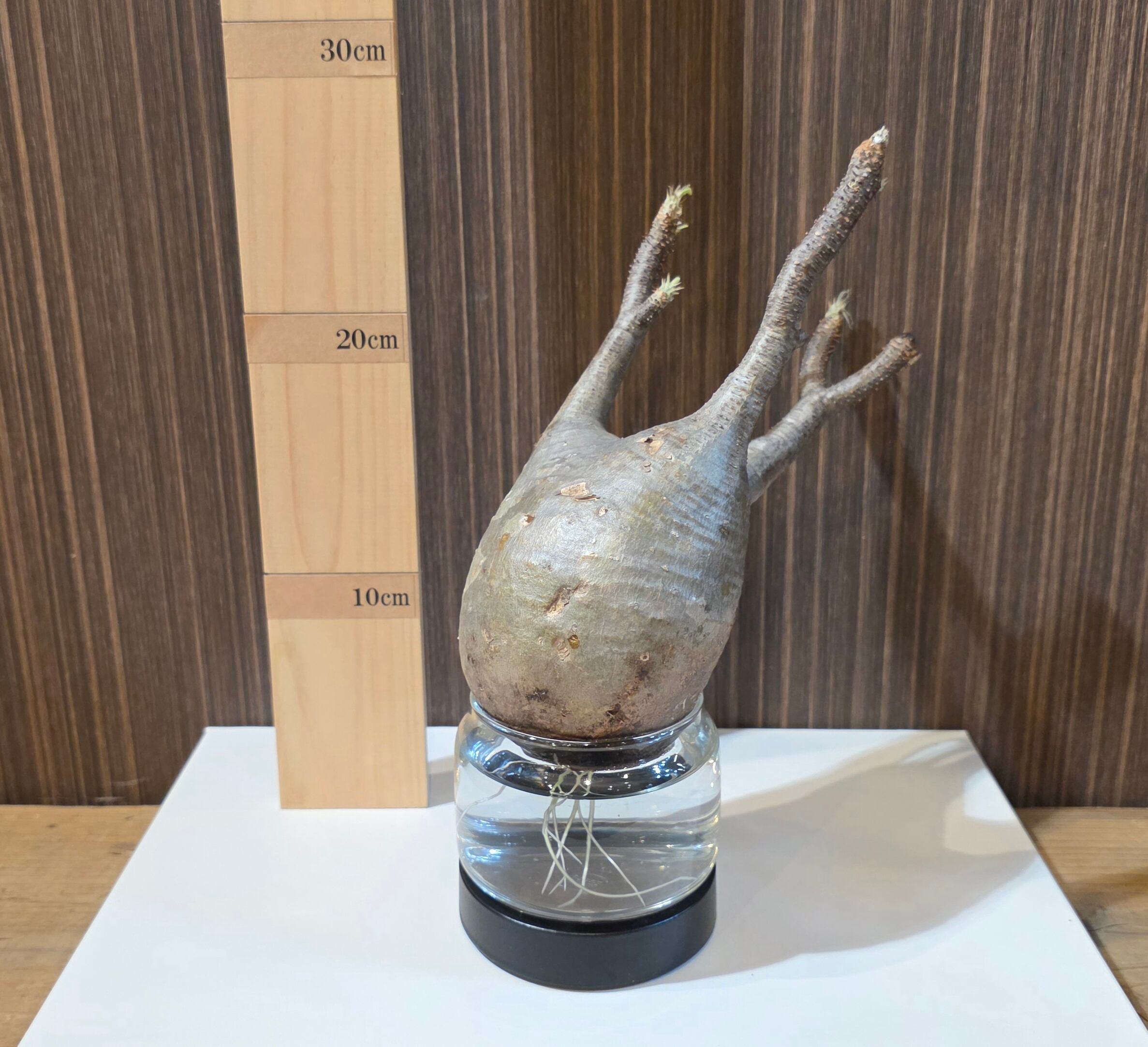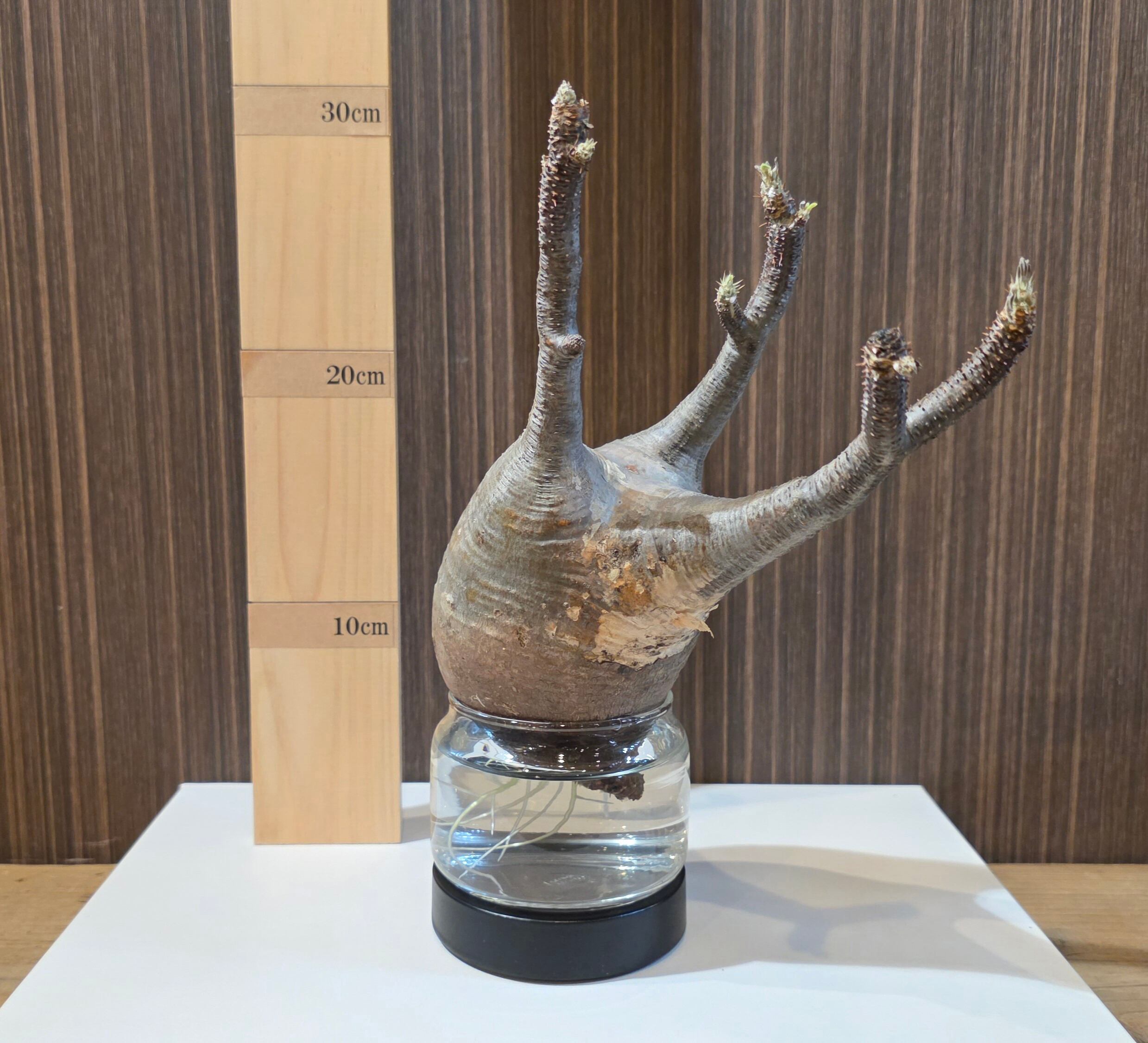 ユニークな姿が目を引く多肉植物で、珍しい塊根を持つパキポディウムの一種です。独特なフォルムと美しい色合いが、インテリアやガーデニングに華を添えます。