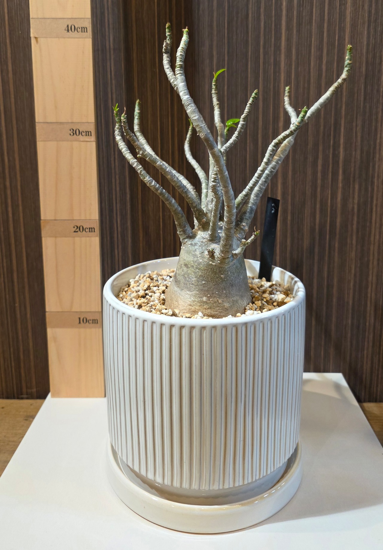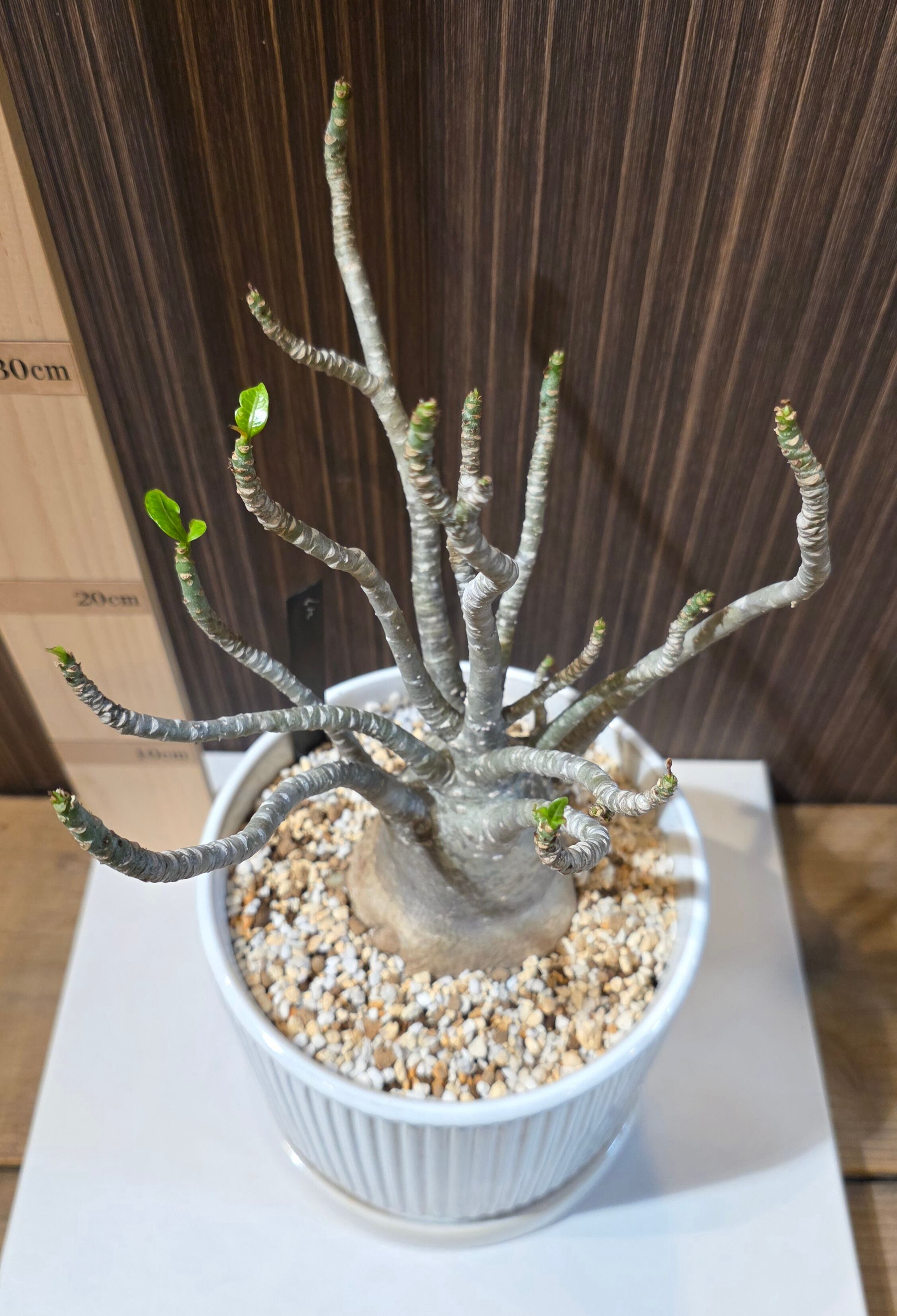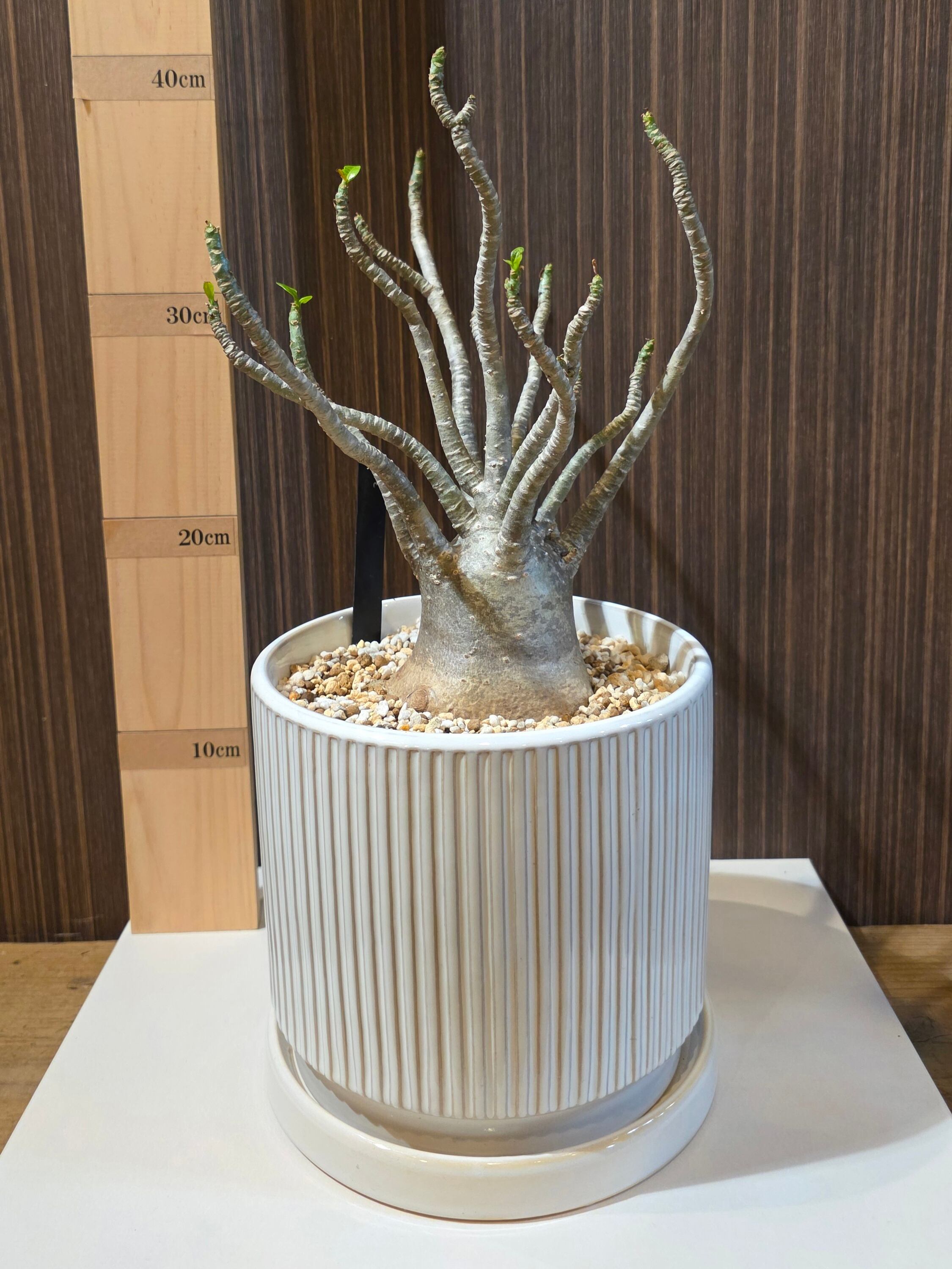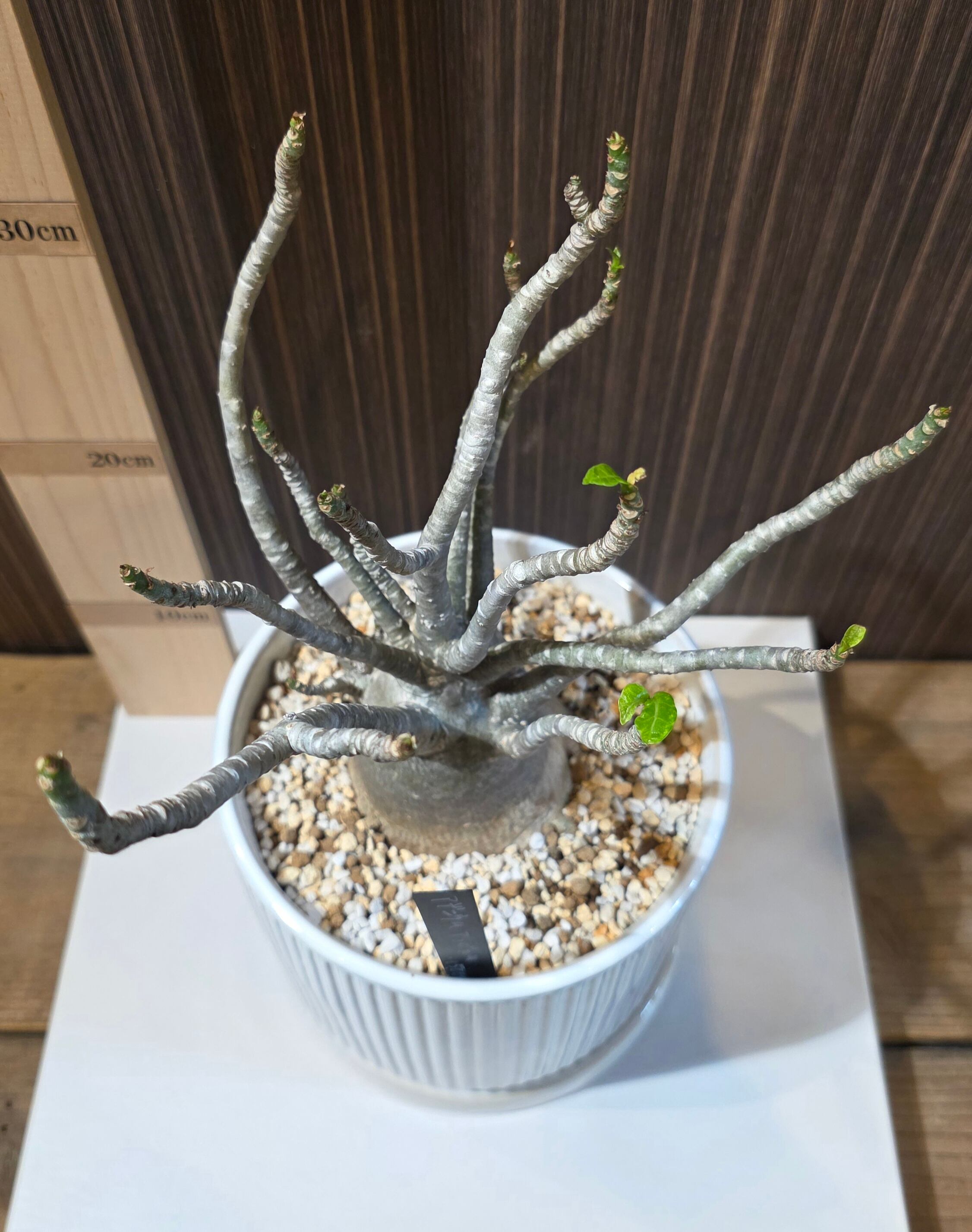 草姿: 短く太い幹が特徴で、葉が上部に密集して生えています。丸みを帯びた葉の形状が可愛らしさを演出します。